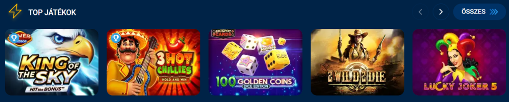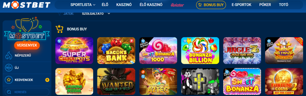 A Mostbet kaszinója széles választékot kínál klasszikus és modern játékokból, amelyek között megtalálhatók a legnépszerűbb nyerőgépek, mint például King of the Sky, Lucky Joker 5 és más tematikus játékok. A játékosok kipróbálhatják a legújabb slot gépeket, amelyek bónusz köröket és ingyenes pörgetéseket kínálnak, emellett a blackjack, rulett, és baccarat asztali játékok is rendelkezésre állnak. A Mostbet kaszinója mind asztali, mind mobil verzióban elérhető, így bárhonnan és bármikor élvezhetjük a játékokat.