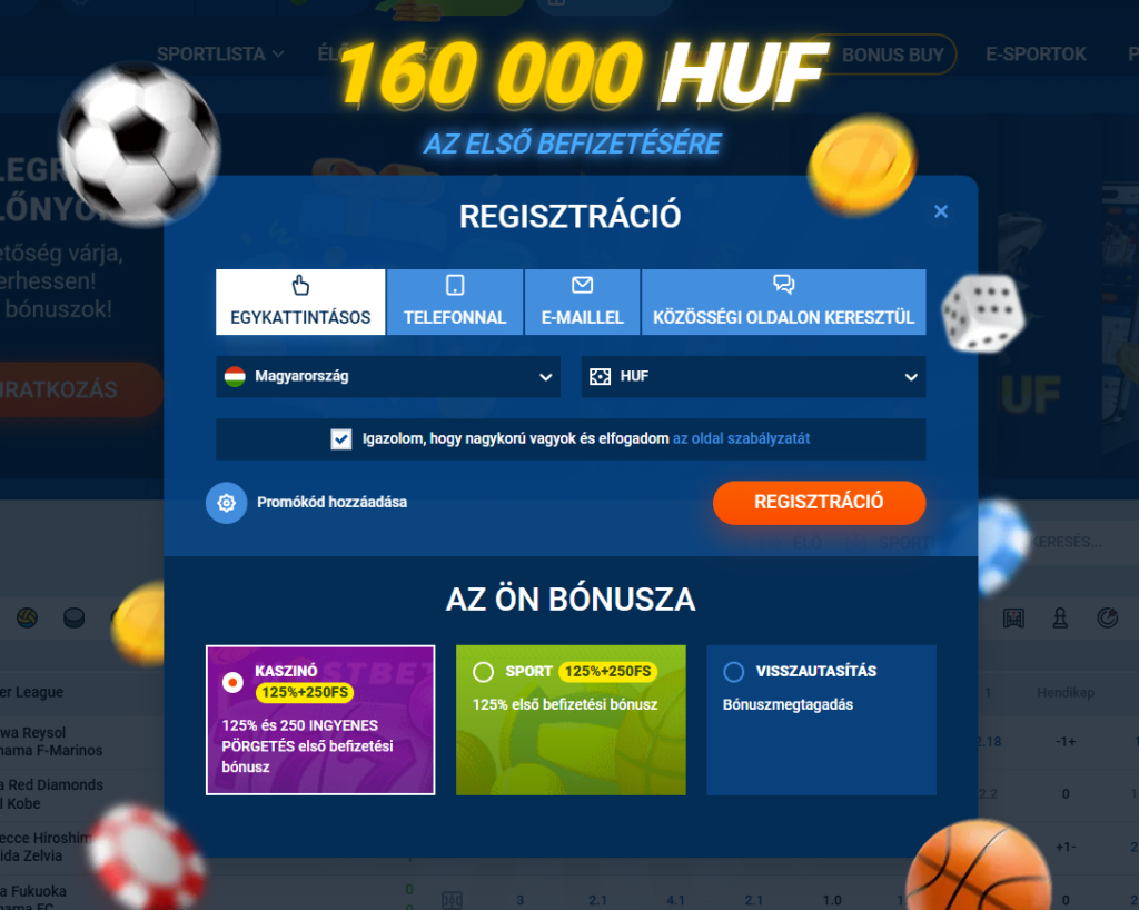 Az új játékosok üdvözlő bónuszt kapnak az első befizetés után, akár 160 000 HUF értékben. Emellett elérhetők befizetés nélküli bónuszok, ingyenes pörgetések és VIP jutalmak.