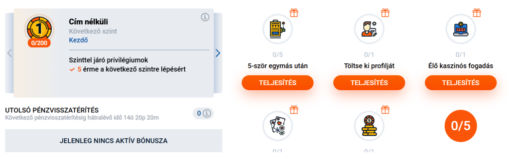 Cashback kaszinójátékokra | 10% heti veszteség után | VIP vagy aktív játékos státusz | – |